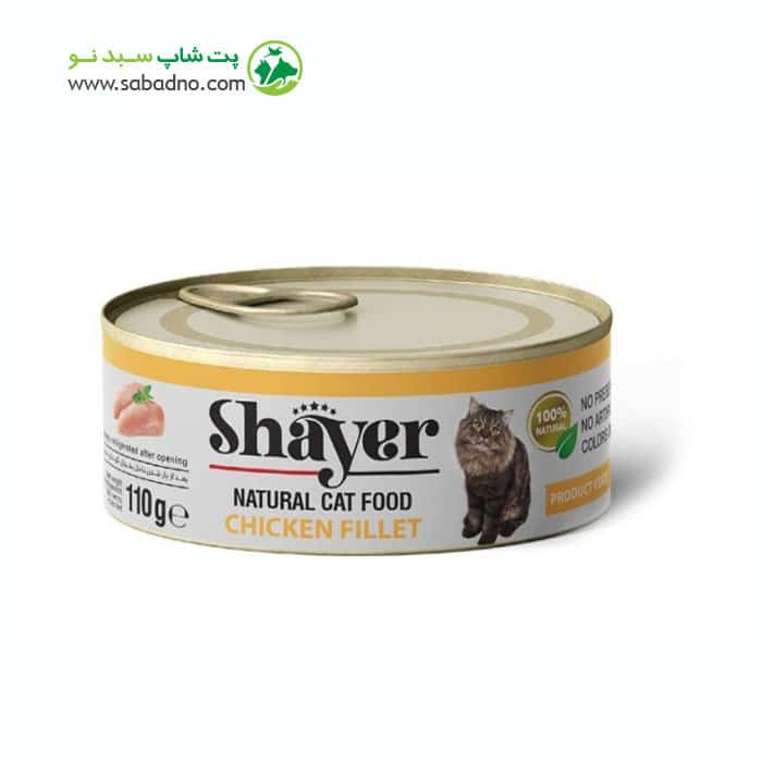 کنسرو نچرال گربه با طعم فیله مرغ وزن 110 گرمی برند شایر کد 231125