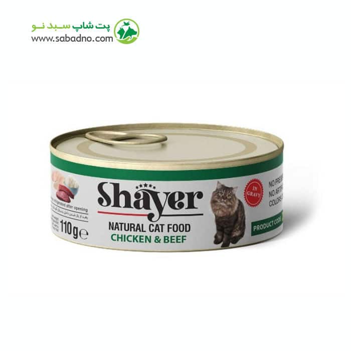 کنسرو نچرال گربه با طعم مرغ و بیف وزن 110 گرمی برند شایر کد 231115 :