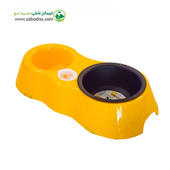 ظرف دوقلوی آب و غذای سگ و گربه برند دنیل مدل بطری خور همراه با یک عدد ظرف فلزی کد X63-STL