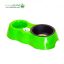 ظرف دوقلوی آب و غذای سگ و گربه مدل بطری خور همراه با یک عدد ظرف فلزی کد X63-STL