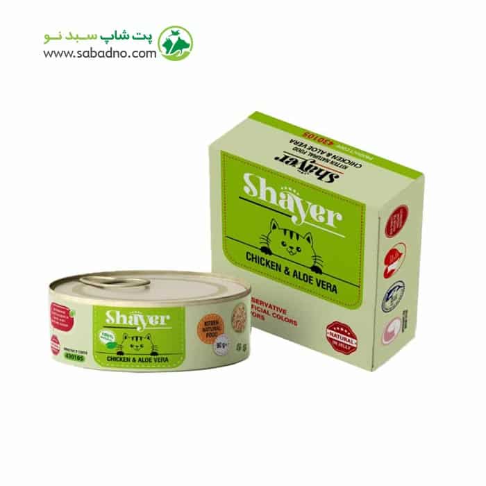 کنسرو بچه گربه با طعم مرغ و آلوورا برند شایر وزن 90 گرم کد 430105 :