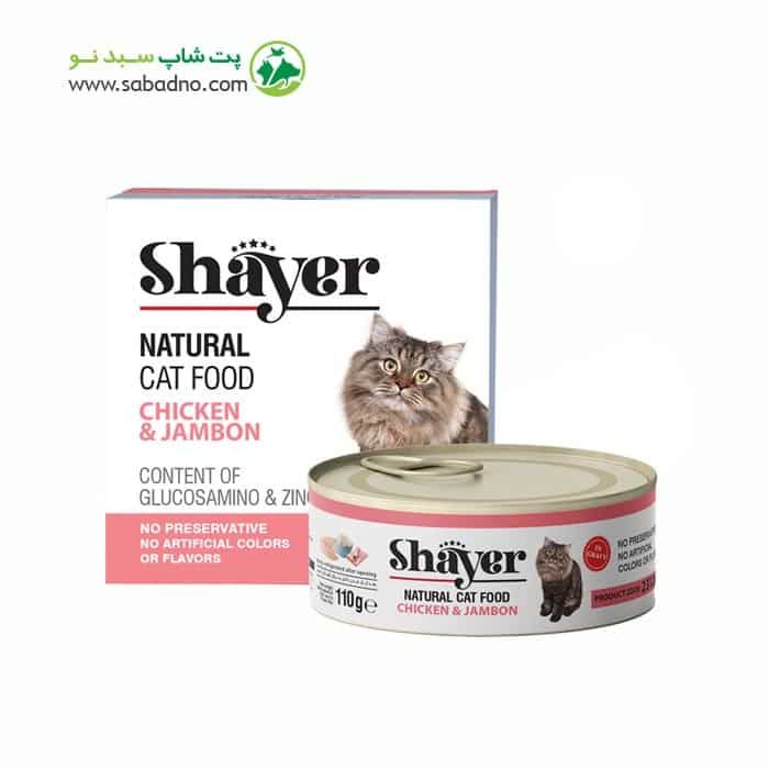 کنسرو گربه با طعم مرغ و ژامبون برند شایر وزن 110 گرم کد 231281 :