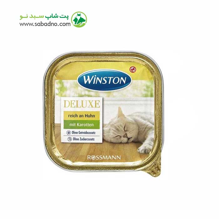 ووم مخصوص گربه دولوکس وینستون طعم مرغ و هویج در سس مدل (Cat Winston mit karotten) وزن 100 گرم :